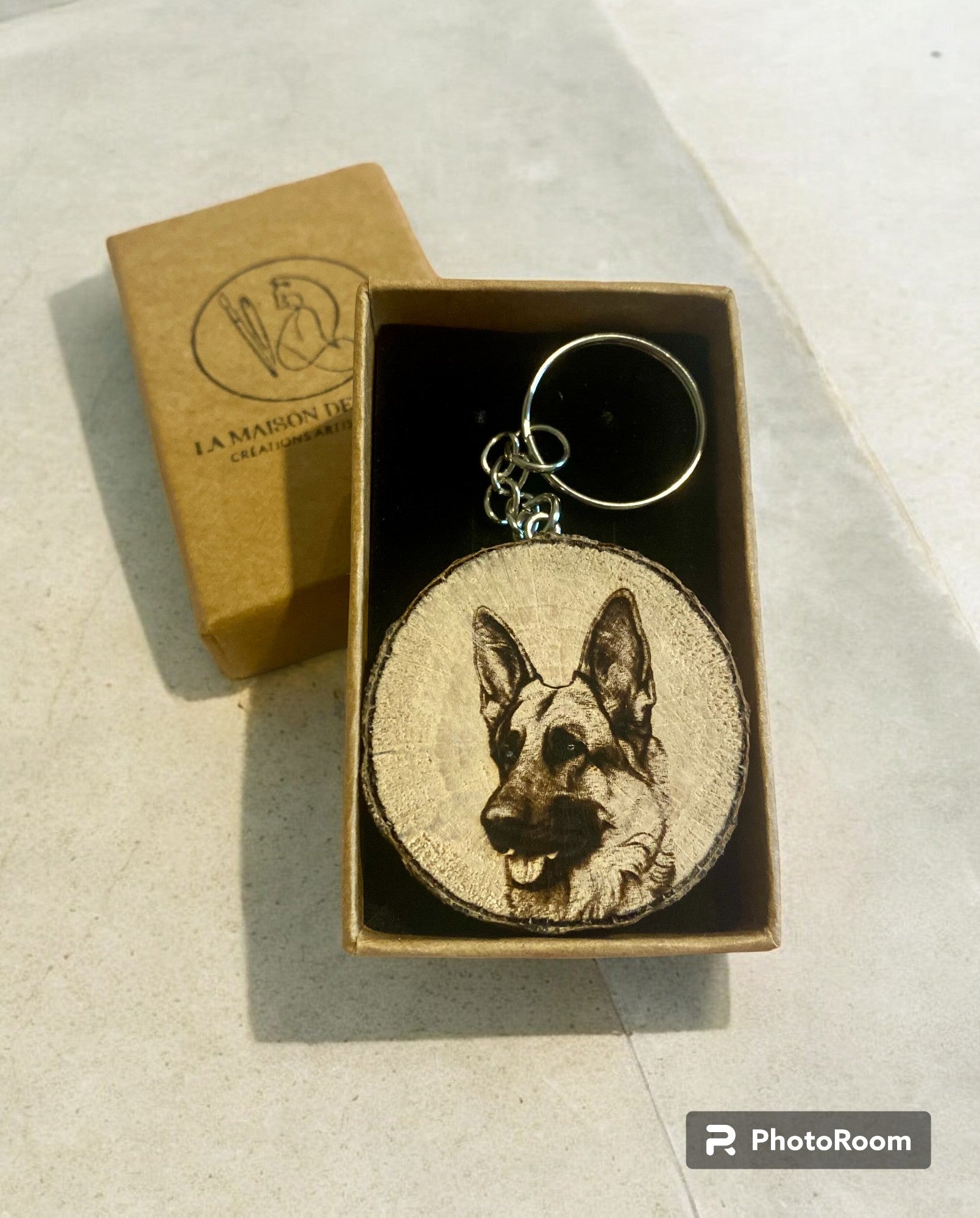 Porte clé en bois personnalisé chien - animal de compagnie gravé