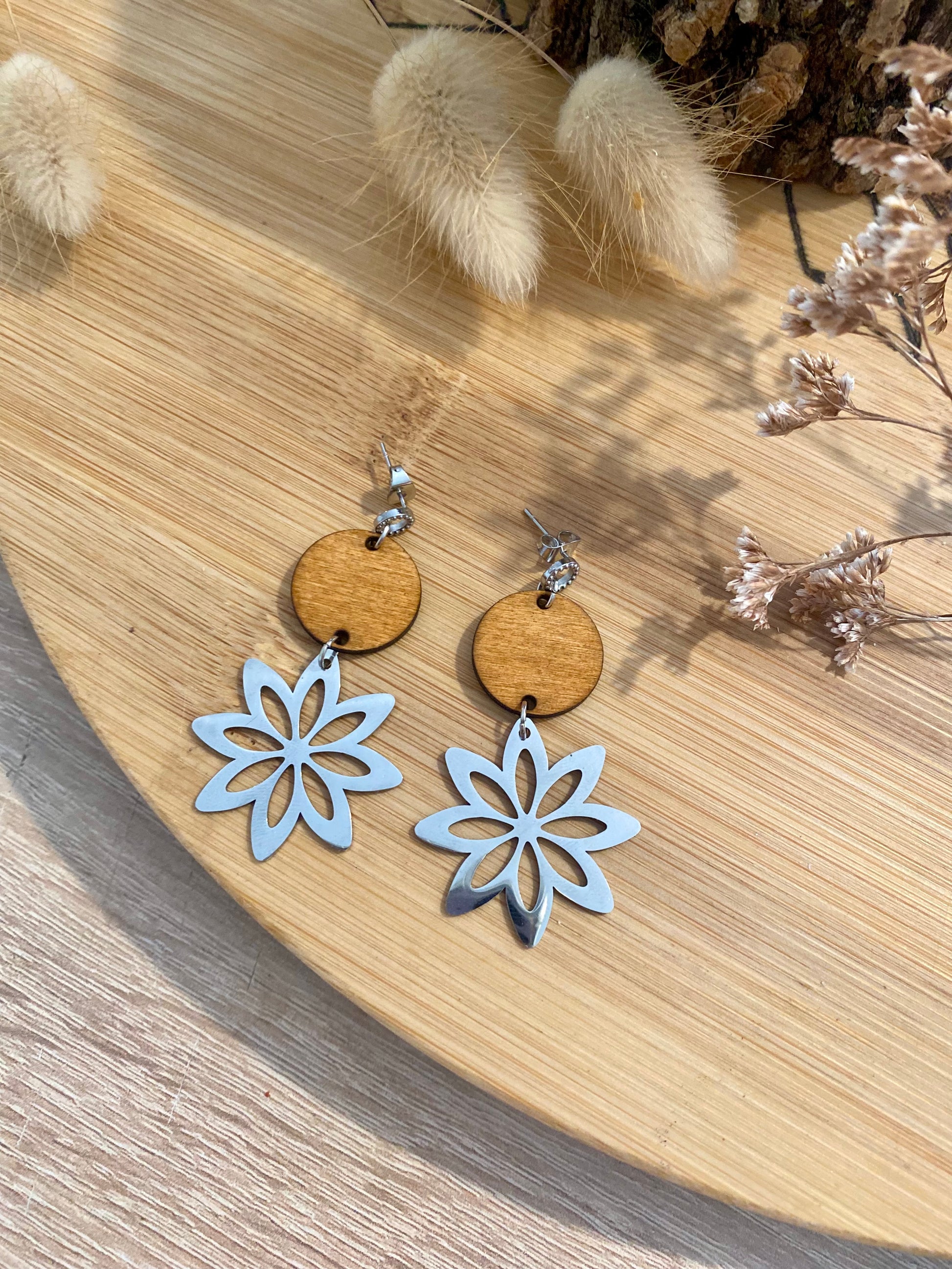 Laissez la nature vous chuchoter ses secrets avec nos boucles d’oreilles Bisous feuillages. Une création poétique qui mêle la chaleur du bois, l’élégance intemporelle de l’acier inoxydable et la délicatesse de motifs inspirés des feuilles et de la forêt.