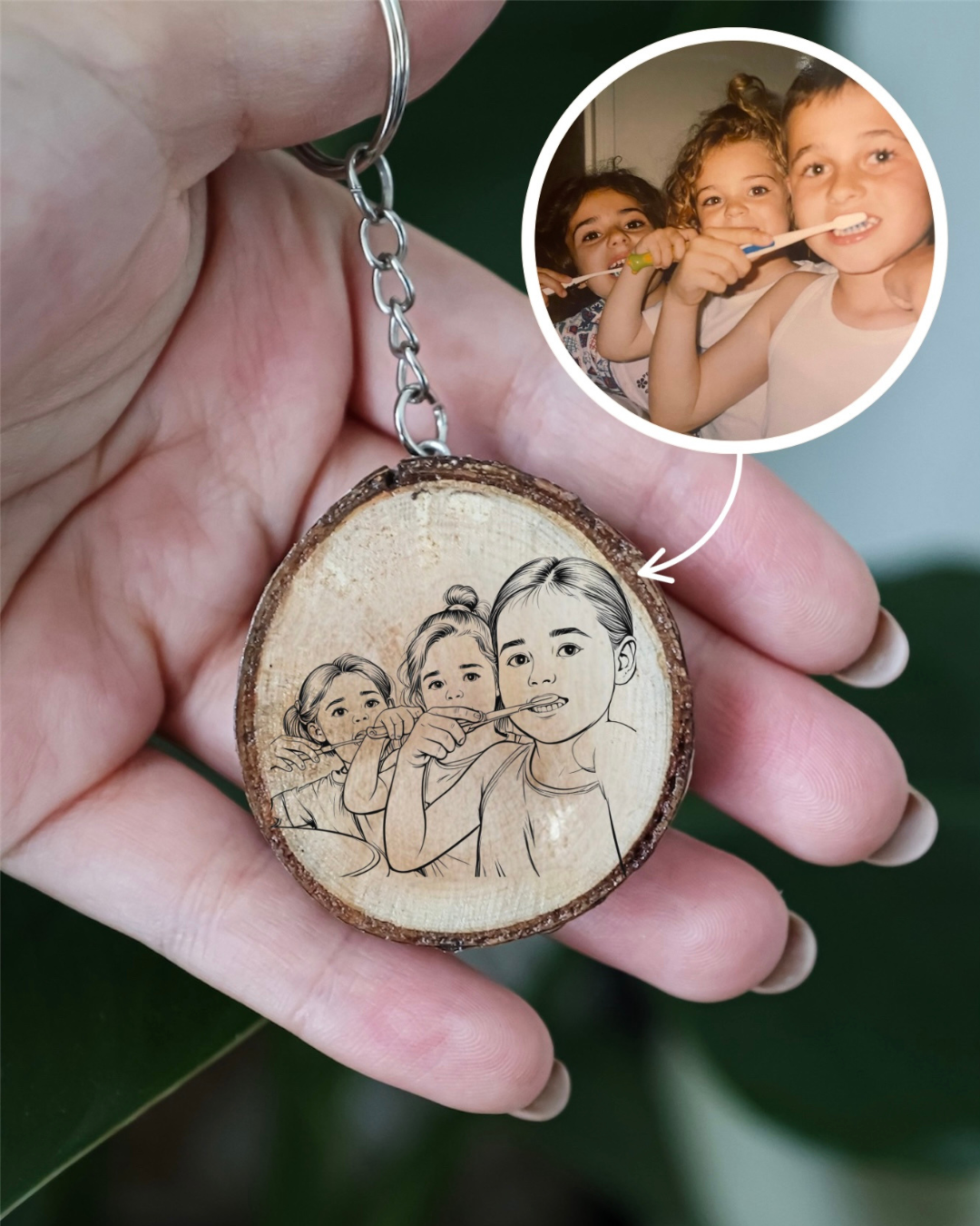 Porte-clé en bois personnalisé – Gravure à partir de votre photo